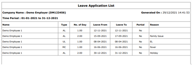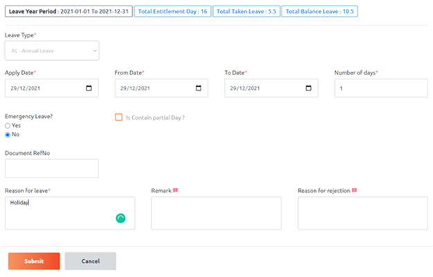 Our e-Leave setting is user-definable, give flexibility for employers to set up the leave according to their company’s leave Policy.You can create unlimited types of leaves, such as annual leave, sick leave, or any special leave.