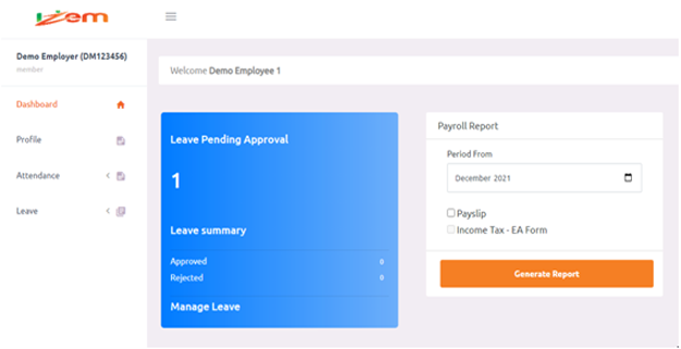 Izem Leave is a subscription-based cloud software comes with employee self-service login. The system offers online leave management linked to payroll and time attendance where you can manage the employees’ leave electronically. The system also provides customizable leave types.